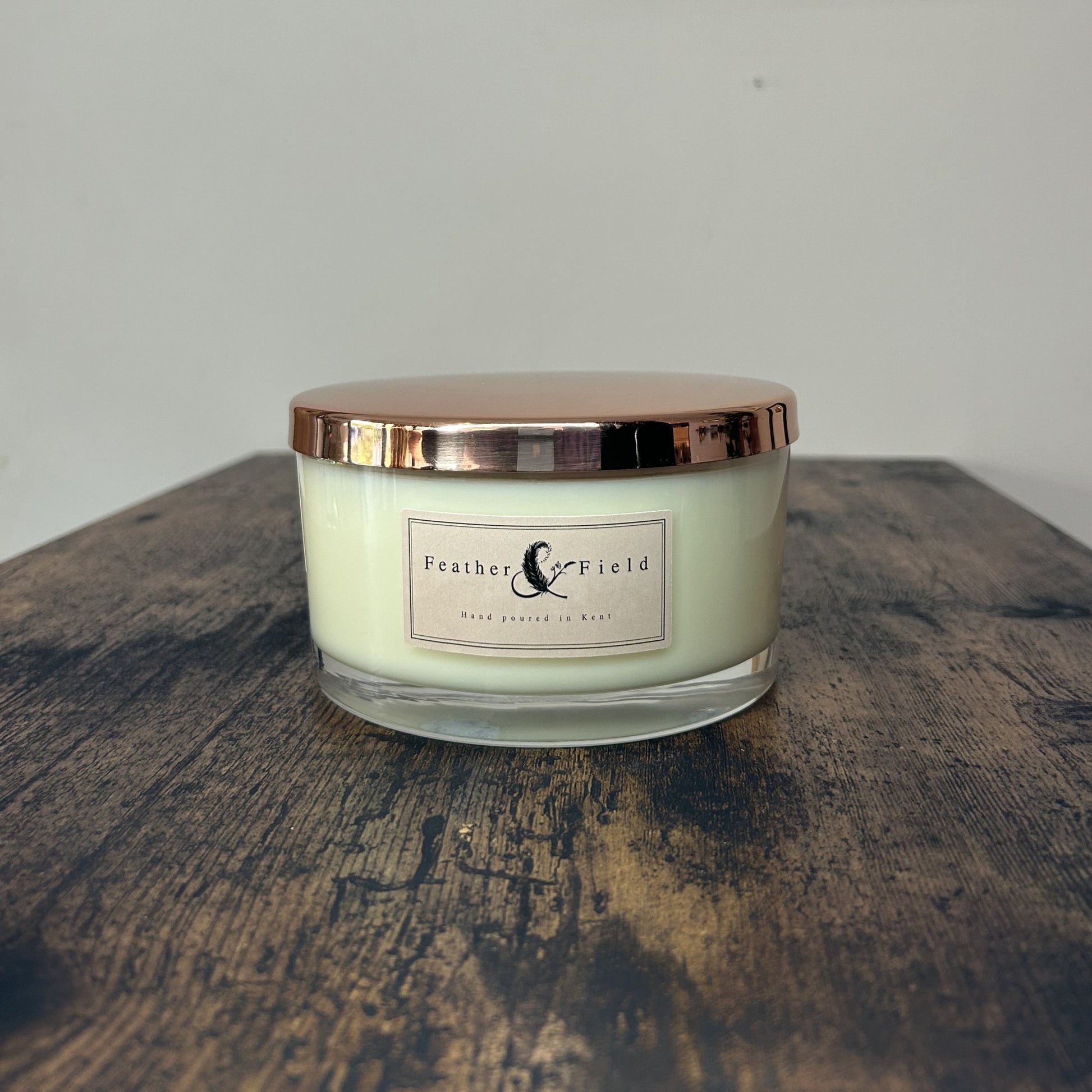 Copper lid: Designed to fit our 50cl 3-wick candle. This copper lid keeps the candle looking clean and beautiful even when it isn't lit. Please look at our accessories section for lids, boxes and other useful candle bits and bobs.